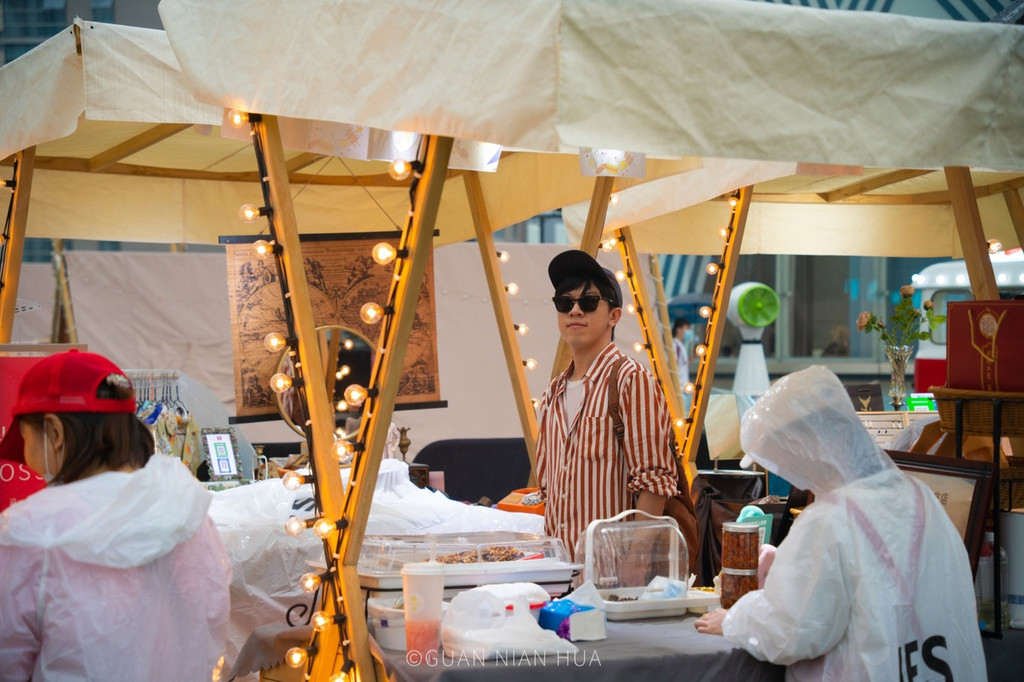 这次在雕塑庭院正好赶上了“秋添新市”夜间主题市集,现场不仅有创意手工、小吃零食,露营帐篷,还有联名的火锅底料,立马买了两包带回家。