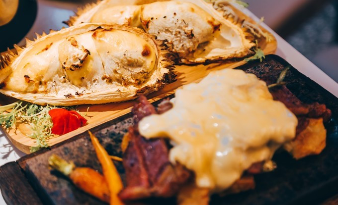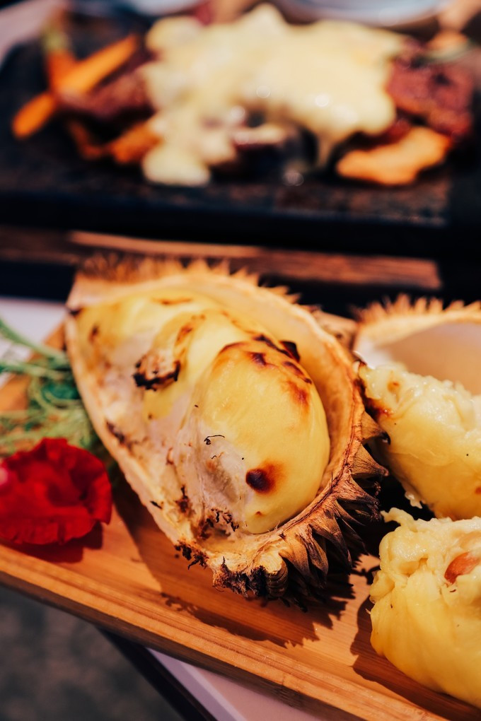 烤榴莲是真的爱了爱了,还没端上桌的时候就闻见了榴莲的香味!
