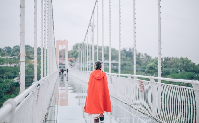 玻璃桥上是俯瞰九曲花海的绝佳之地。