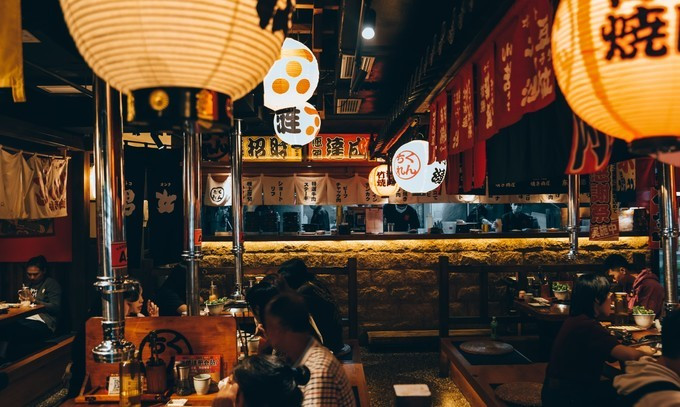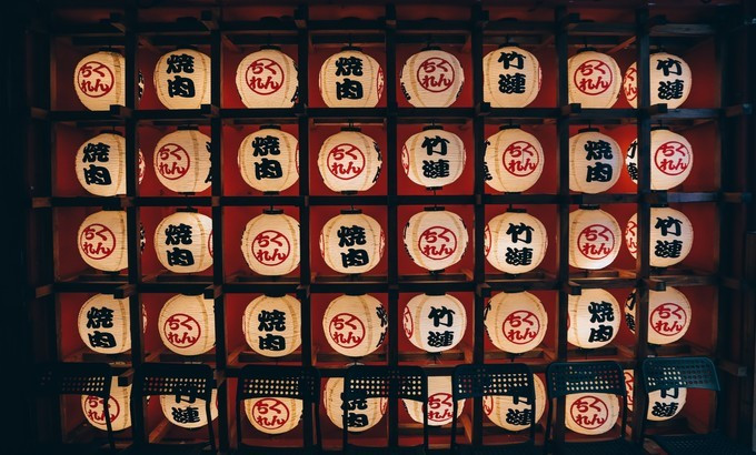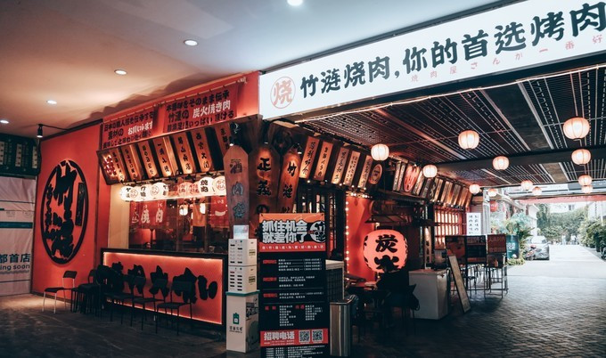 日式灯笼上是大大的“竹涟烧肉”。