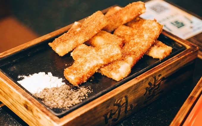 炼奶芝心年糕,软糯拉丝的年糕,外皮烤的脆脆的,蘸上甜蜜蜜的炼乳,我又发现了年糕的新吃法耶。