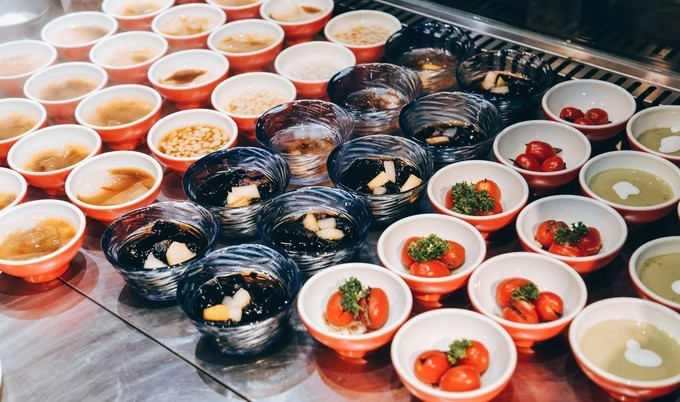 15种甜品水果免费不限量的敞开吃,冰粉、烧仙草、冰糖番茄等等等等,完全吃一口火锅来一口甜品呀,对于爱吃甜品的人来说,我感觉都能吃回本。