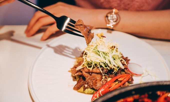 法式煎烤牛舌,这个最考验厨师的水平,一定要把握好火候,趁热吃,一点也不会觉得口味重,反倒是脆嫩的很,很好吃呢。