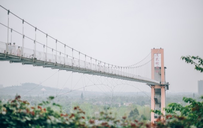 高空玻璃桥,脚底是花海,风景非常的独特,在城市周边就能体会到网红的玻璃桥项目。