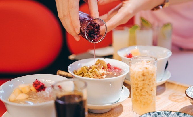盖碗冰粉组合绝对是凹造型的必备,一套上来,自己选择喜欢的配料加进去,和朋友一人一碗,巴适的很。
