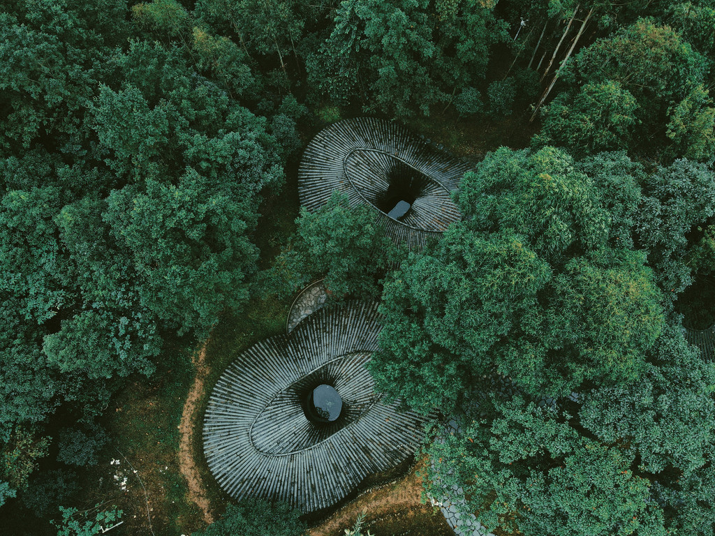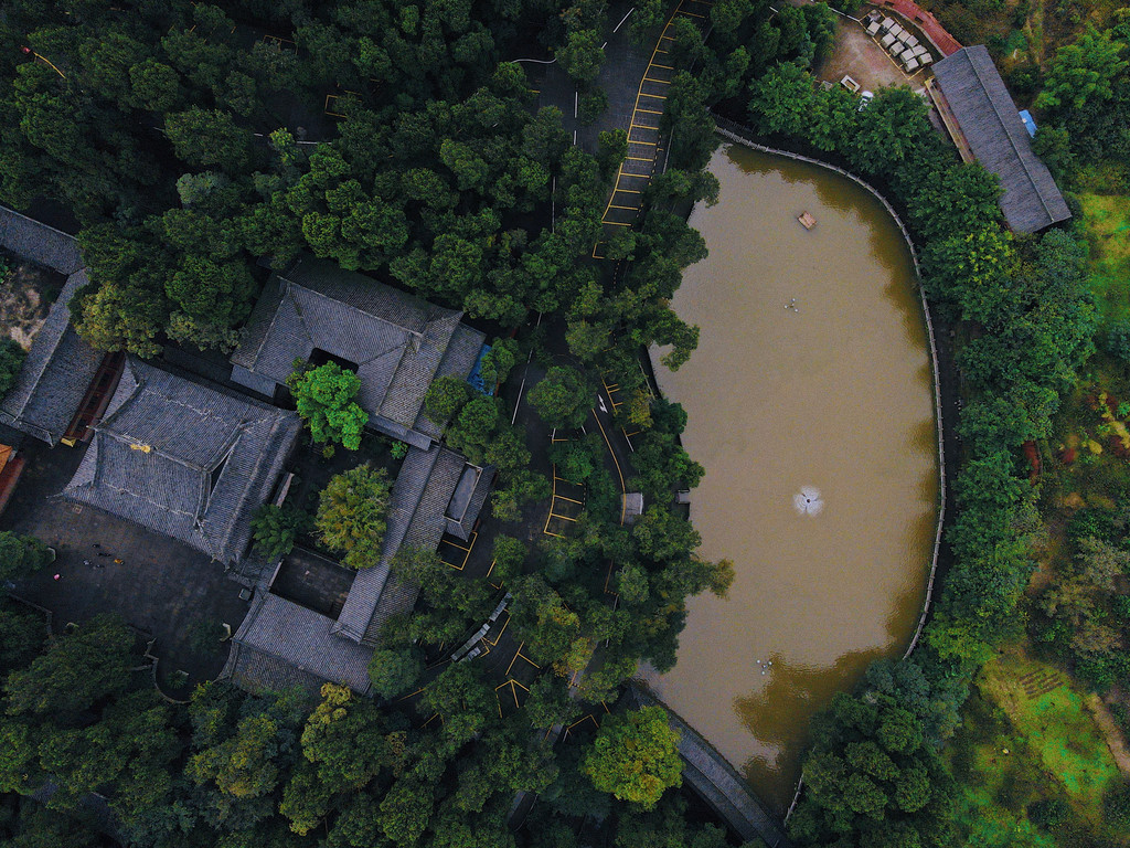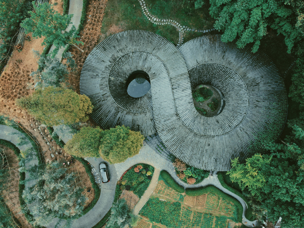 第二天我们先去了一趟道明竹里,这是成都周边的一个小村子,以其特色建筑出名,从高空俯瞰可以看到它的独特造型,因此村落里延续发展的一些竹艺活动和农家饭都很受欢迎。