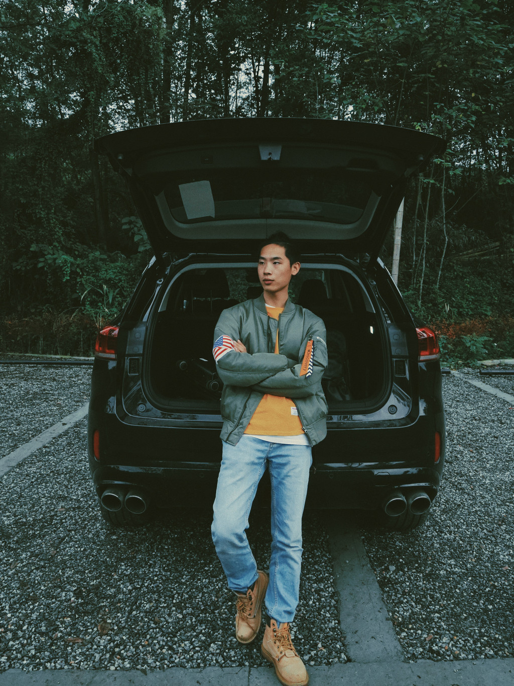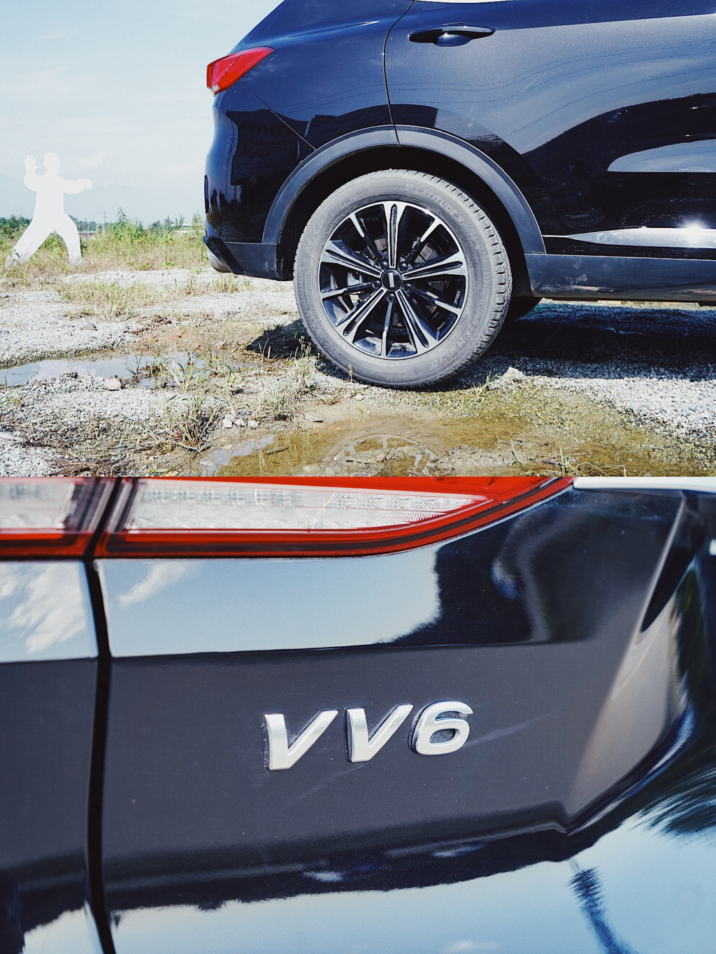 找了个比较空的地方就去凹了几张造型,我们直接把车开进去了,VV6真的是很出众的SUV造型,坐在后面拍一拍,在路上的氛围感立马就有了呢。