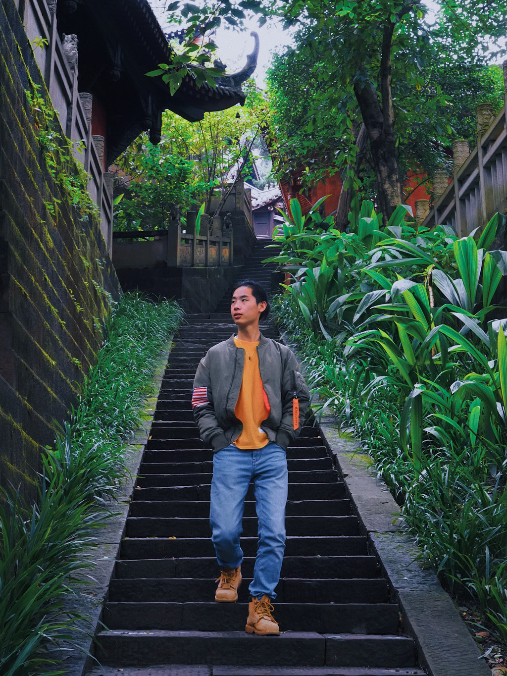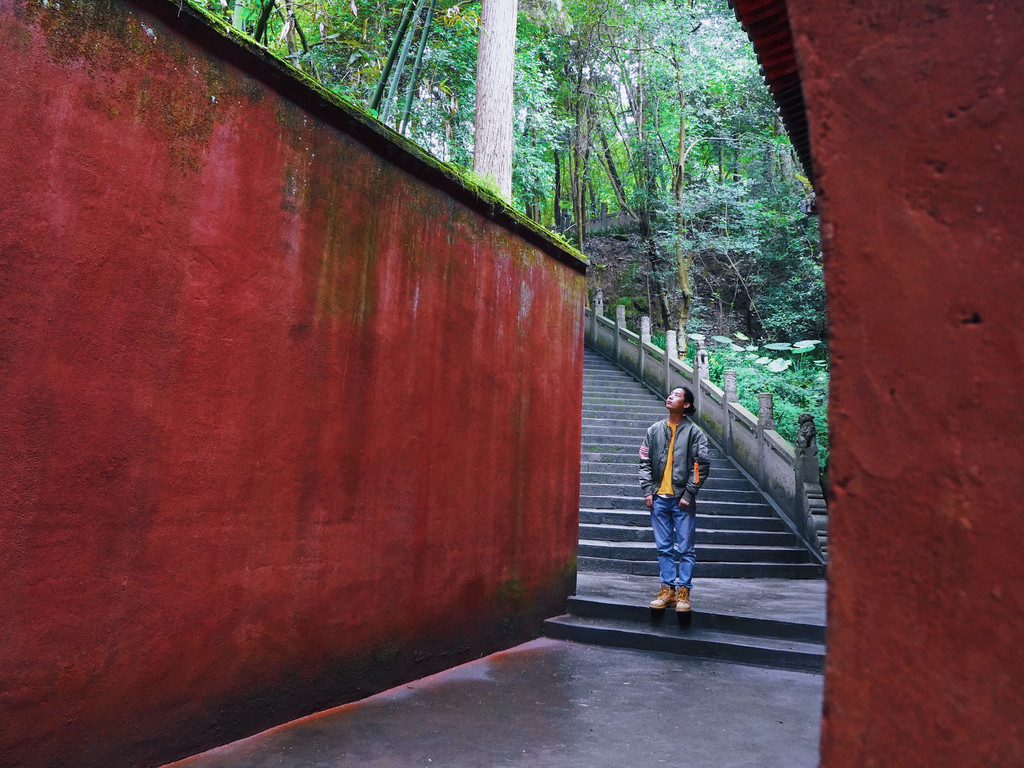 随着层层台阶一路往上走,这座川西五大佛教丛林一直,处处有植物装扮,连嵌在石墙缝隙里的绿草都显得很有灵性,抵达最高处可以俯瞰整个寺庙全貌,更是一幅绿意朦胧惹人心动的景色。