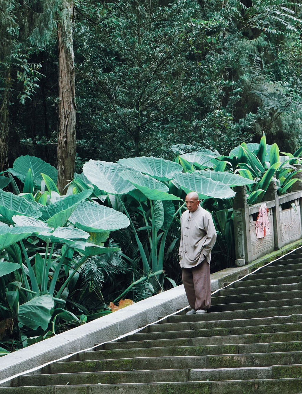 上山的过程中我才见识了书上对于青城山的描写“全山林木青翠,四季常青,诸峰环峙,状若城廓,故名青城山。”爬青城山其实并不会太费力,反而更像一种观光游玩。