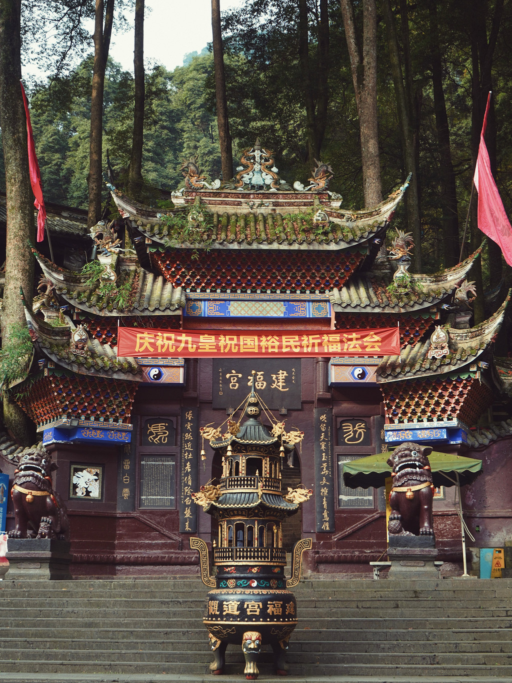 山上的寺庙香火很旺,每一处都有自己的特色,上清宫、建福宫之类的地方人士最多的,挑了几个有意思的去看看。道观里的丹炉很漂亮,黑金配色倒让人觉得莫名有些时尚感,这里实在太热闹了。