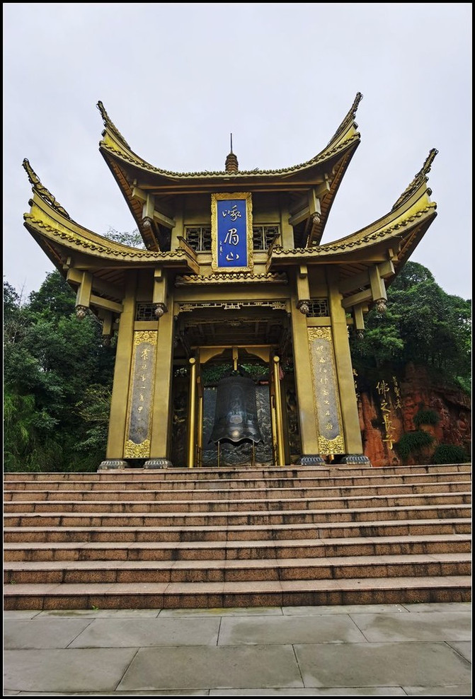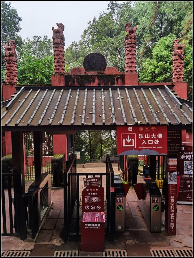 早餐后在酒店旁乘坐601路公交车,票价5元,行驶约一个半小时直接到达 乐山 市东方佛都景点门口下车。把行李寄存在景区后开始游览。