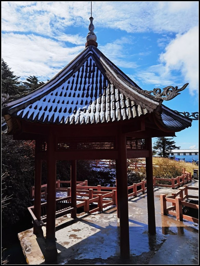 峨眉山金顶我们的运气真好,在我们来峨眉山的前几天,峨眉山连续下了两场大雪,山上积雪很厚,我们登山当天天气放晴了,积雪才开始融化。