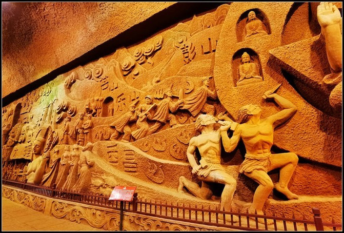 东方佛都东方佛都东方佛都东方佛都精美的摩崖造像,这是一种在原山崖上直接雕刻成佛的一种造像技艺。以佛经故事为核心,各种不同时代和文化的因素为构成元素,实现了古代佛教造像艺术的传承和创新。