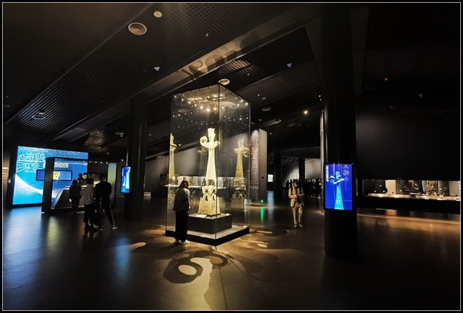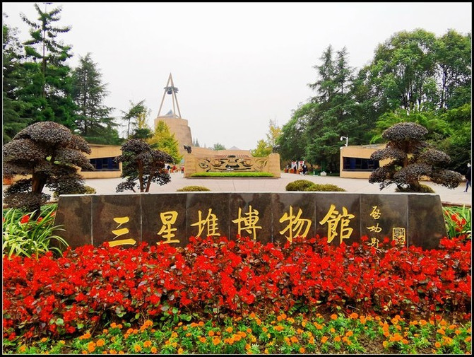 三星堆博物馆从 成都 开车约一个多小时就到了三星堆博物馆。三星堆博物馆位于全国重点文物保护单位三星堆遗址 东北 角,地处历史文化名城 广汉 城西鸭子河畔,南距 成都 40公里,北距 德阳 26公里,是 中国 一座现代化的专题性遗址博物馆。博物馆于1992年8月奠基,1997年10月建成开放。三星堆博物馆馆区占地面积约530亩。