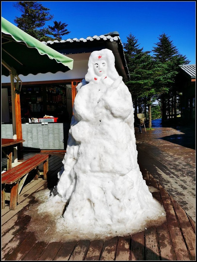 峨眉山金顶峨眉山金顶峨眉山金顶景区里由积雪堆积的雪人。