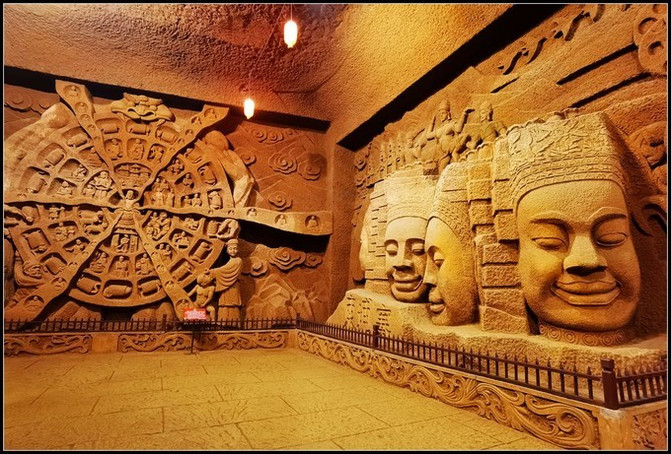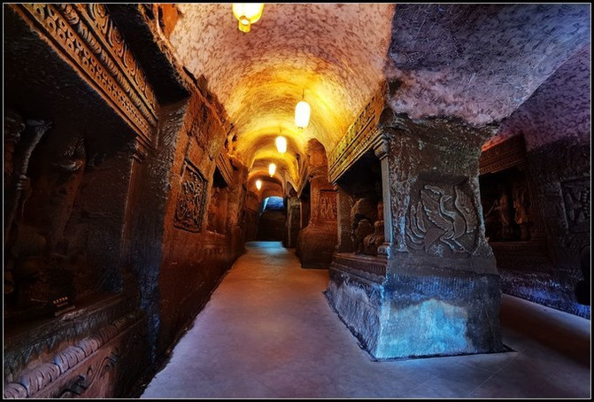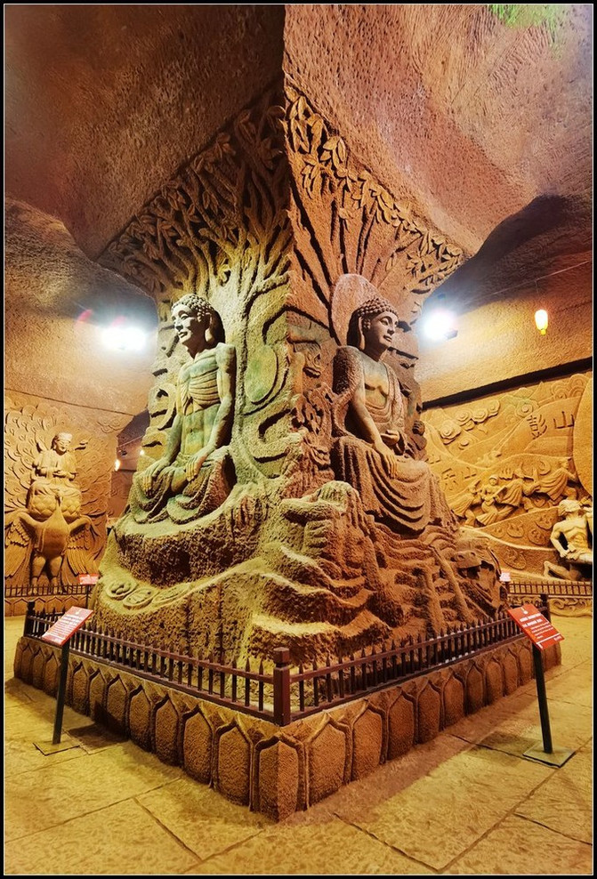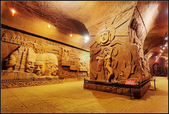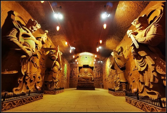 东方佛都佛教艺术的地下宫殿。洞中烟雾缭绕,气势恢宏,如入仙境。地宫是东方佛都的重要景点