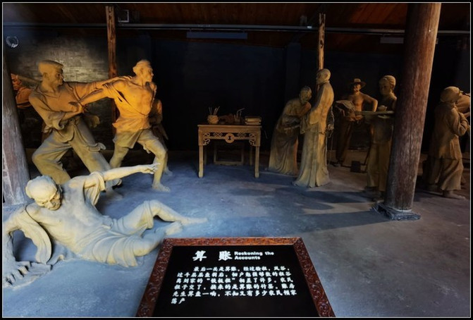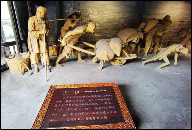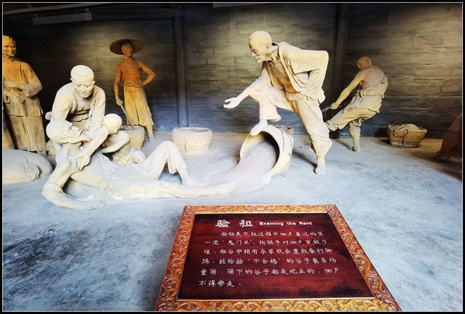 陈列于 四川 省 大邑 县刘文彩庄园的大型泥塑《收租院》,创作于1965年,是 中国 现代大型泥塑群像。《收租院》根据当年地主收租情况构思创作,共塑7组群像:交租、验租、风谷、过斗、算账、逼租、反抗。以情节连续形式展示出地主剥削农民的主要手段──收租的全过程,共塑造114个真人大小的人物。雕塑家将西洋雕塑技巧与 中国 民间传统泥塑的技巧融而为一。