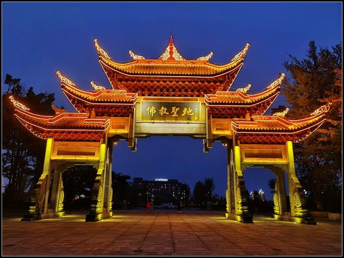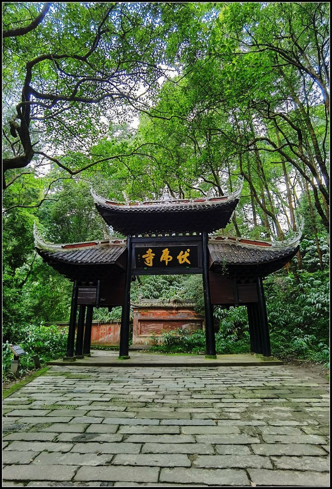 伏虎寺伏虎寺峨眉山我们居住酒店的地方是报国寺客运中心区域。这个大牌坊正面由郭沫若所提“天下名山”,另一面为赵朴初所提“佛教圣地”。