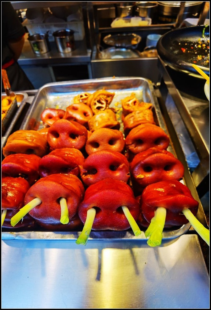 宽窄巷子宽窄巷子卤煮好的猪鼻拱,插上大葱,“装象”