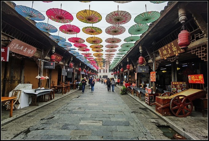 安仁古镇老街风情。安仁有保存比较完整的历史街区及庄园住宅古建筑群面积约30万平方米;有保存民清时期的刘氏庄园群、刘湘公馆等古公馆27座;有 红星 街、树人街、 裕民 街等三条古街;小洋楼(原公益协进社址)、安仁中学(原文彩中学)、钟楼等。
