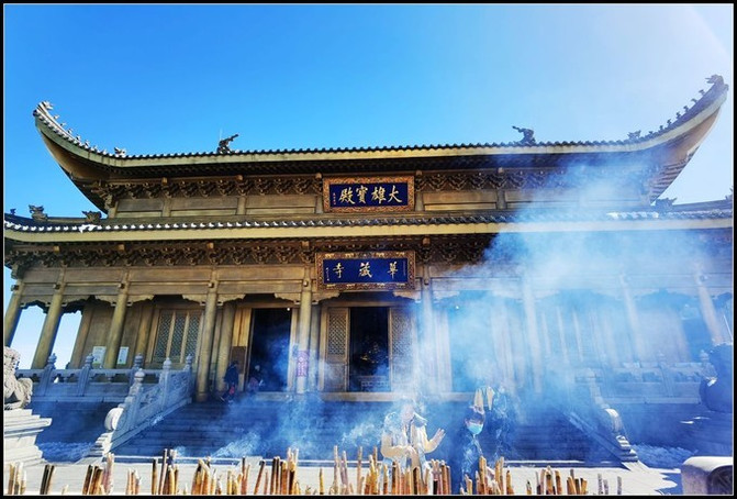 峨眉山金顶峨眉山金顶金顶是峨眉山最高的殿堂。也是普贤殿,即金殿、殿门的匾额有金顶、行愿无尽、普贤愿海、华藏庄严等。