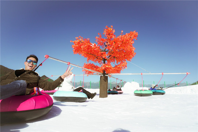 太子岭滑雪场滑雪的时候一定要带手套,佩戴墨镜,要上中级道必须带头盔。其实双雪板是初学者最佳的选择,雪板还可以根据鞋子大小来调整,确定自己穿戴好以后就可以进入雪场了。
