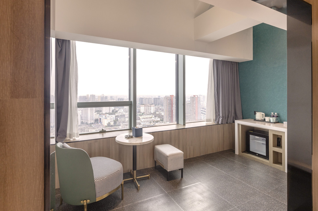 酒店客房均在32-35楼,位于34楼的酒店月吧,在闲暇之余可享受最慵懒的成都下午茶。