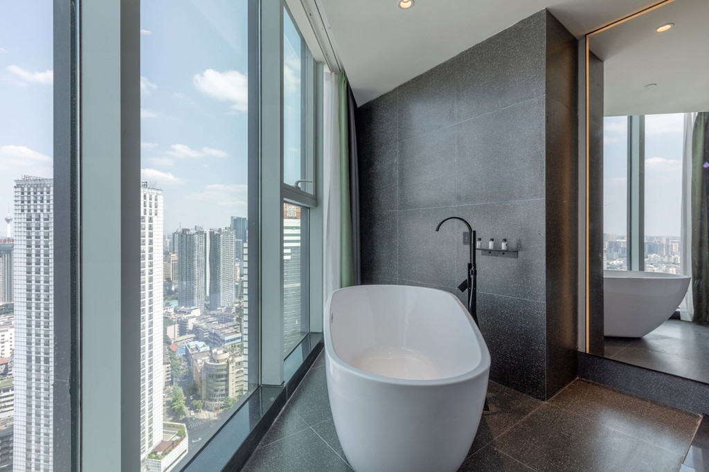 数千年前,当古蜀的人们站在金沙的河边往南瞭望,成都平原被茂密的大树覆盖,河水清流而土地肥沃,南边除了无限的遥远,再也看不到什么。而今,站在西姆天际35楼的客房里,往东西南北看,皆是成都繁华的天际线,而脚底下就是成都市中心骡马市商圈,我们在这里,能清晰的感受到成都的厚重与繁华