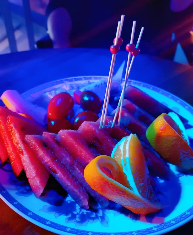 水果拼盘:各种水果搭配在一起,口感爽脆,新鲜可口,非常的好吃的。
