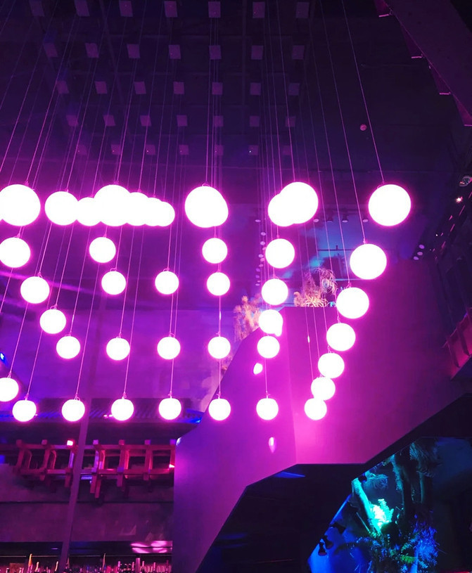 逛完宽窄,夜幕也快降临,此时我们来到了今天的最后一站—别院里酒馆。来到这家店,就被这里的独特魅力所吸引了,走进大厅,抬头就可以和五彩斑斓的光影对上眼。