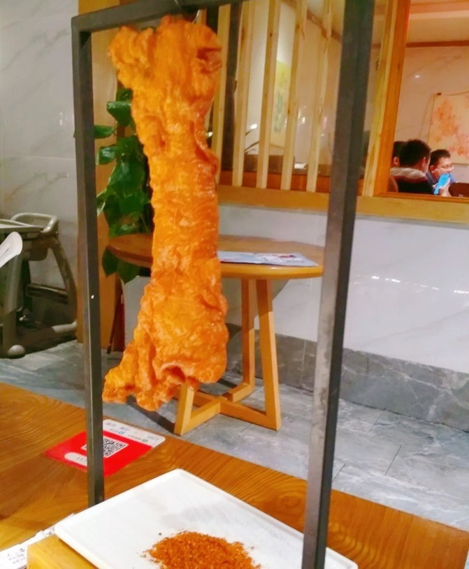 缘贡龙门 吊肉:做法像整条炸的酥肉,小妹一边剪一边说吉祥的话,仪式感不错,肉很嫩,吃起来很爽滑,蘸上辣椒面更不错。
