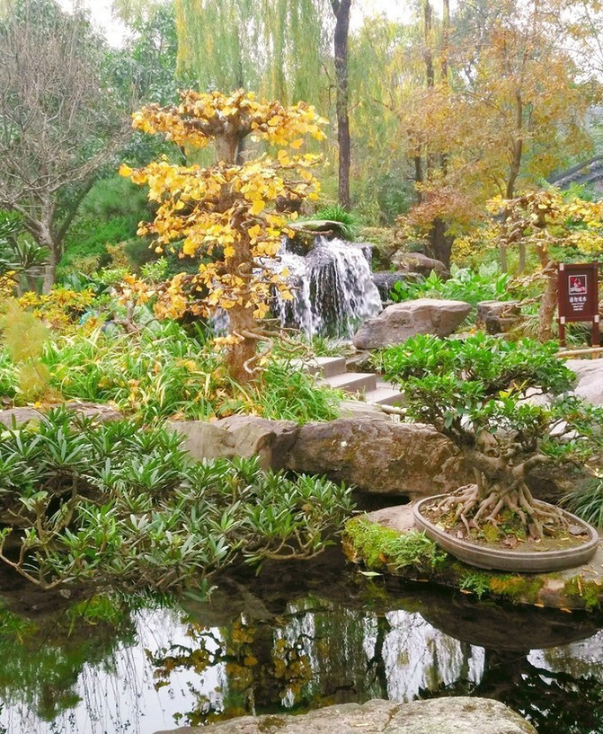 一路走走停停,转幽静,赏盆景,观花草,闻暗香。看盘根错节的古树,观玲珑壁巧的拱桥水影,叹满目疮痍的汉宫残柱。怀着对于蜀国凭吊的敬意,缓缓地走了出去。