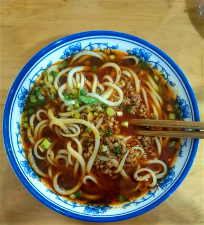 黄龙溪肚子饿了,找吃的哈,上次来没有吃成一根面,因为人多的进不去,这次来的早便没有多少人,进去来一碗吧,面是20/碗,感觉有点小贵哈,很快就上来了,面条蛮粗,感觉是拉面,但是拌了过后感觉每一根都很有料,放了些牛杂牛肉等。汤底是四川传统的川菜调料,又辣又麻,吃完饭来一口汤,完美。