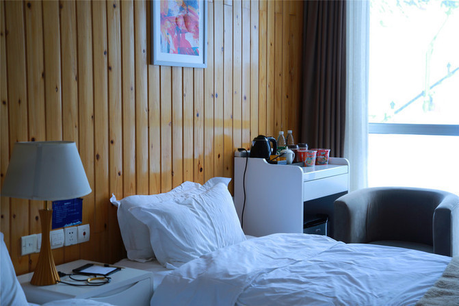 我们到了九鼎山之后住在了鹤鸣庄假日酒店,位于太子岭滑雪场雪具大厅2-3楼,拥有各类客房71间,房间全部采用木质桑拿板装饰,带有暖气供应,房内高空落地窗让你开阔视野,景区内雪景一览无余。设计独特,装修新颖,具有浓厚的羌族韵味。