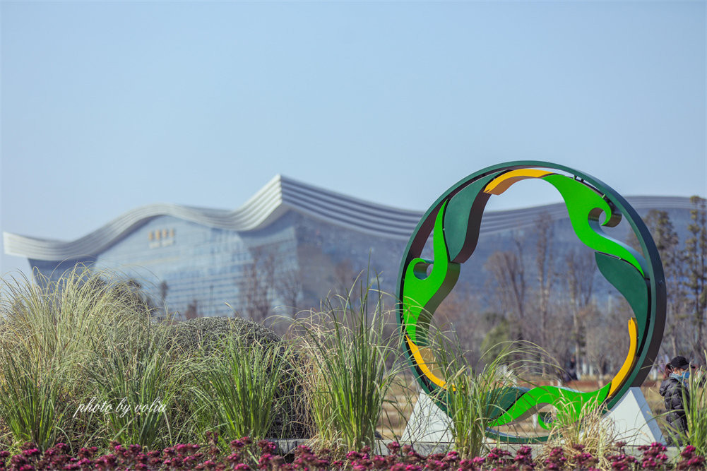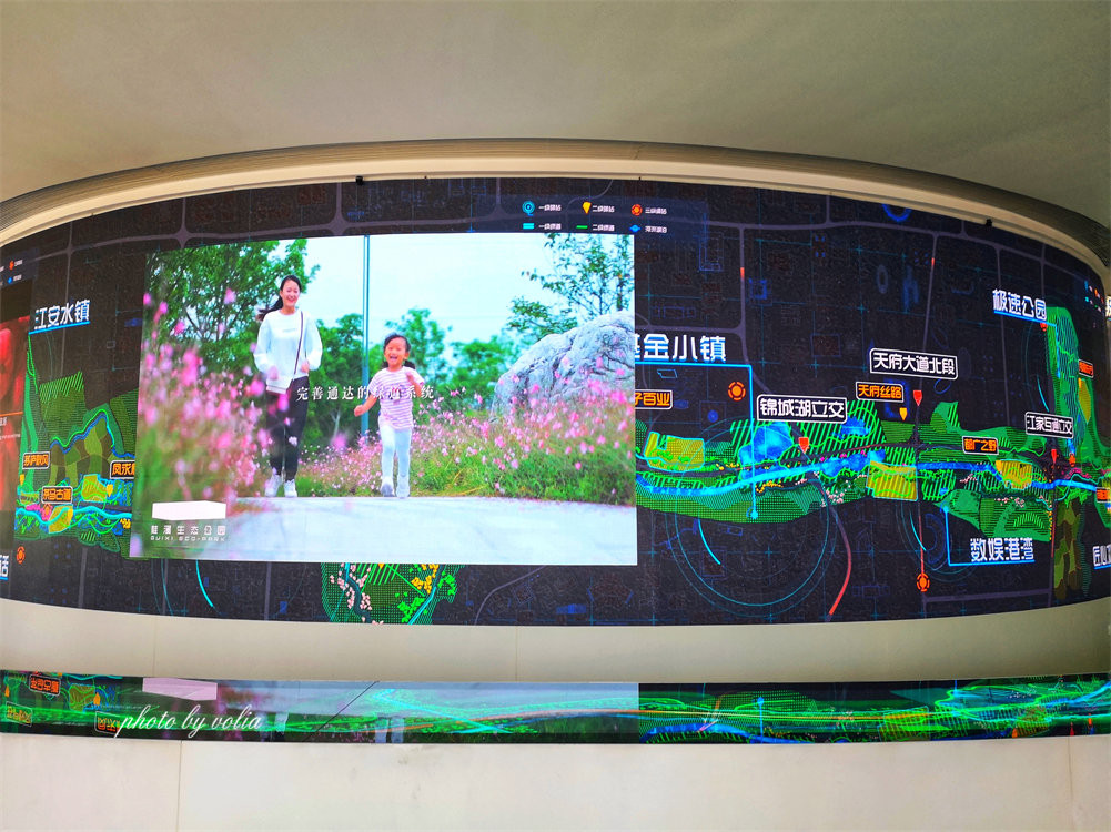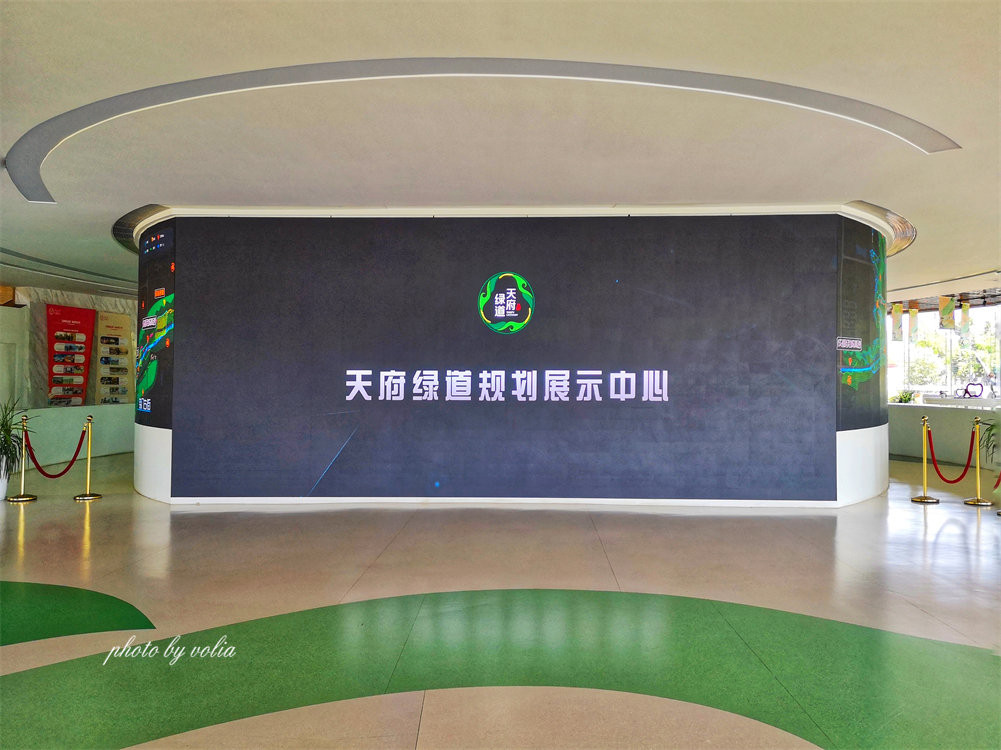 来到桂溪生态公园一定要去天府绿道规划展示中心看看。它是一座约1700平方米的钢结构、全玻璃立面圆形单体建筑。中心一楼结合参观游线设置环形LED屏幕,通过VR技术、三维展示等方式充分展示天府绿道规划建设成果。
