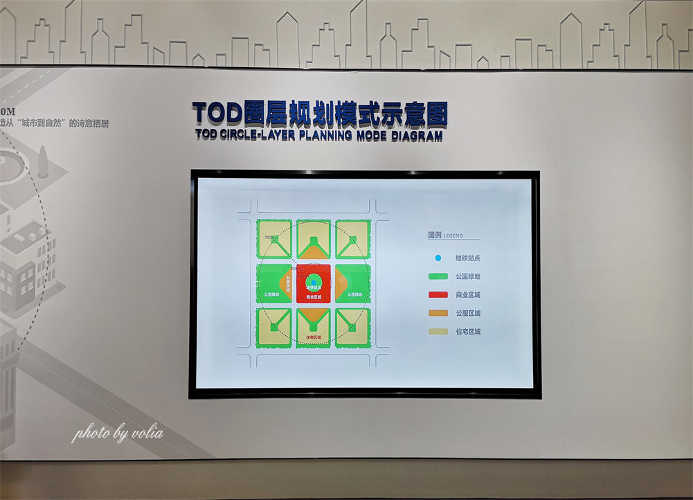 TOD展示中心首个展区即TOD缘起及世界实践展区,由TOD定义及历程、TOD内涵、经典案例三部分组成。该展区以“什么是TOD?”切入,以时间轴的形式展示TOD从萌芽、酝酿、诞生到蝶变的发展历程。通过解析从传统农耕时代、工业时代到轨道交通时代的城市发展规律,揭示TOD诞生与发展的内在逻辑。