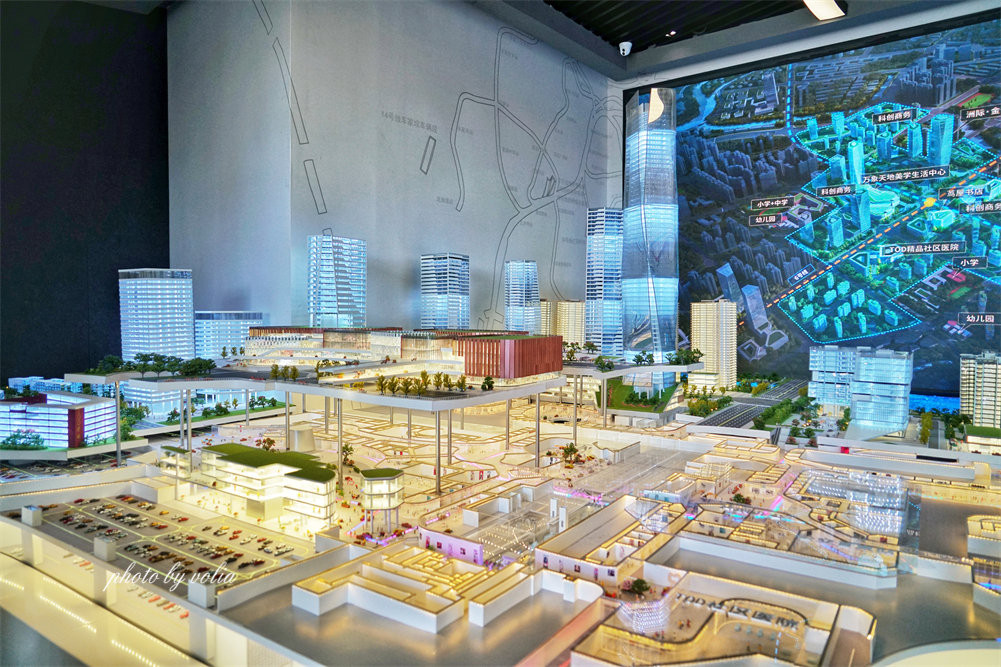 在第三展区,展示中心分别从TOD成都理念、顶层设计、示范项目、策划设计、国际团队、成都特色和专家采访六个维度阐述TOD成都模式,同时,采用数字沙盘和实体沙盘多维度展示TOD项目和未来TOD生产、生活、生态和消费场景。2020年末以来,陆肖、双凤桥、梓潼宫TOD陆续亮相,为成都TOD交出一份“十三五”收尾之战的精彩答卷。在这里,通过一体化的城市功能布局,和城市空间格局的巧妙设计,为人们展现了一副全然不同的城市生产生活画卷,为人们描摹出了未来TOD城市全新生活方式的理想示范。