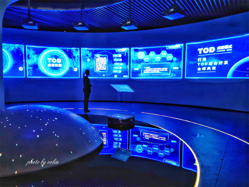 在建设国家中心城市的关键时刻,成都立足高质量可持续发展,以“全域轨道”开启城市发展新纪元,从2010年开通运营第一条地铁,到2020年558公里运营里程,到2035年1666公里壮阔图景,迅速织就一张世界级的轨道交通线网。通过270度超大环形屏幕,可以深刻感触TOD世界每一处细节,从空间体验到运行动脉,从经济地理到生活美学,身临其境体验TOD的高效、便捷、舒适。