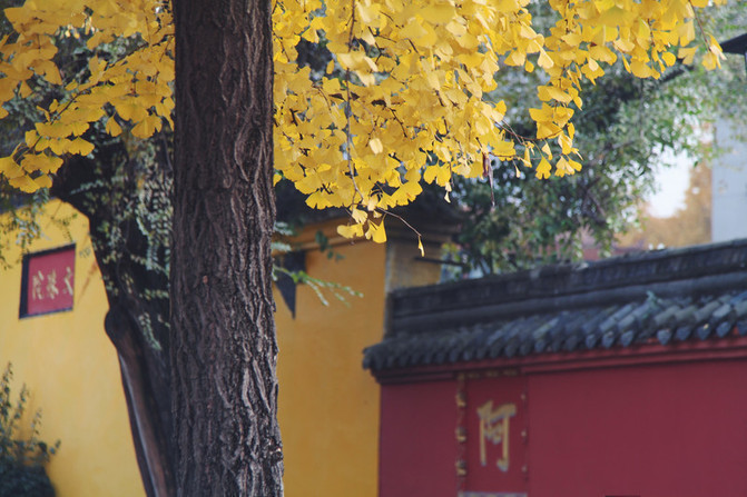 再向前走,就到了文殊阁,这里就是藏经阁所在之处。不见门开,但是在院里发现有几个僧人在打扫落叶。后来知道了藏经阁平时是不对游人开放的,只在几个特定的日子开门迎客。据说,里面收藏了各种佛经上万册,其中有康熙皇帝御赐的《药师》《 金刚经》等作品,还有明清以来的书画作品,最著名的当属康熙皇帝御赐文殊院的“空林”墨迹了。既然没有能进入到这里,那也只能抱着这样的遗憾离开了,或许,带有一点儿遗憾才让我们的生活变得有了些意思吧。