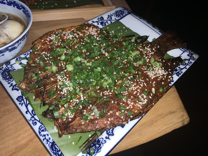 小食香茅草烤鱼也特别好吃,鱼肉烤的焦焦的,外酥里嫩,好吃到不行。看着上面裹满了辣椒,实际口味却不太辣,香香的鱼肉和酒很搭哦。
