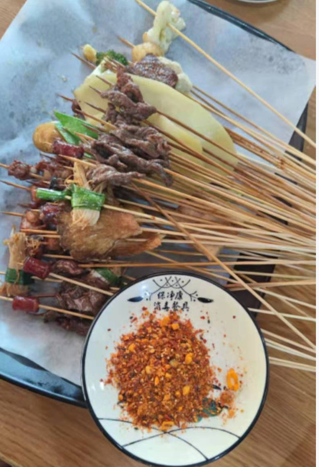 从东门出来后打滴滴回酒店,遇到的滴滴司机很热情,带我们去买了乐山当地最正宗的“甜皮鸭”:“王鸭子·甜皮鸭”,发一点甜甜的味道,真的很好吃。又听了司机的介绍,去吃了本地人比较青睐的“李老三油炸串串”,他家很火,旺季的时候排队要排一整条街。(玉米粒、牛肉串、掌中宝最好吃)