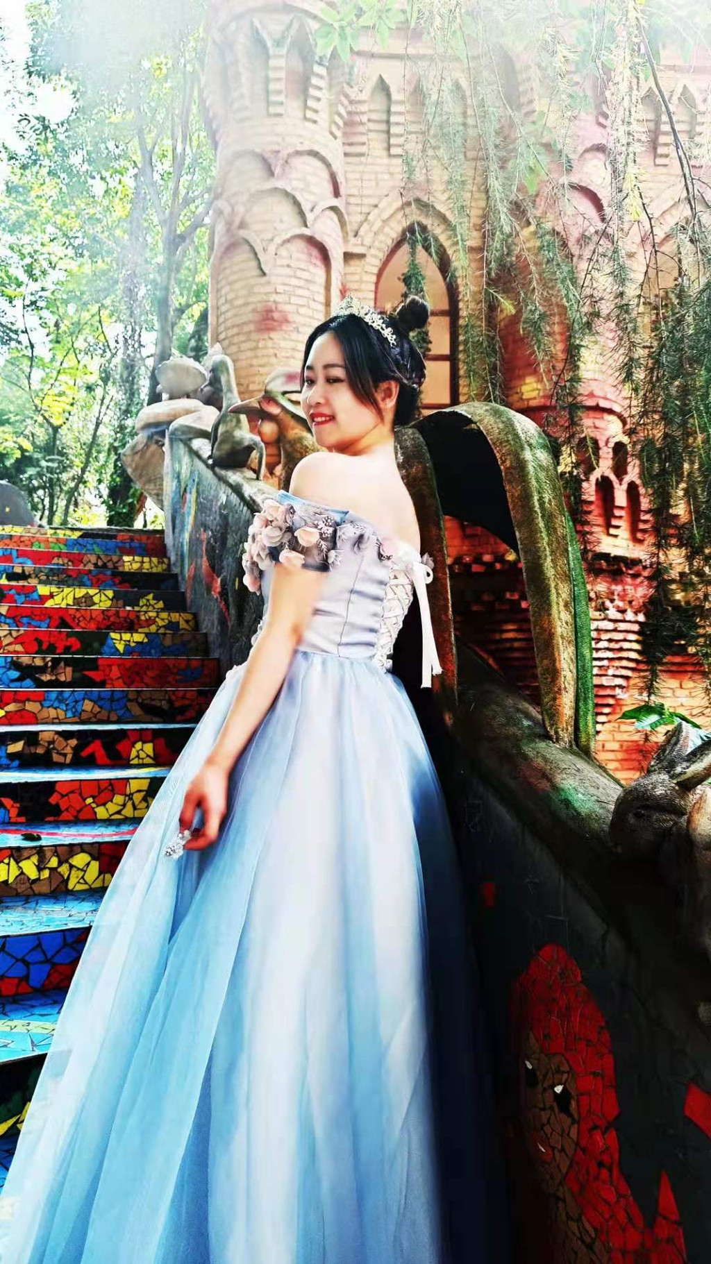 下午去了我认为重庆最值得的景点,“华生园金色蛋糕王国”,这里有大大小小的城堡,但是不管从拍照还是从自身游玩体验来说,都要租一身公主裙才有感觉,就像自己真的像公主一样走在城堡里,我想这是每一个女孩子的梦想吧。进入景区沿着路走,大概100米处就有一家租衣服的,也是景区内第一家租衣服的,记住一定要在他家租,他家的衣服干净而且种类多,一身是50元,不计时间,还会有配套的头饰,但是不包妆容,也不包照相,所以要自己化好妆来。再往里面走有租衣服+拍照的,但是比较坑,拍得不咋地,而且只要拍了,不管你要不要,都要收费,所以如果同伴拍照技术不错的话,互拍就可以啦。