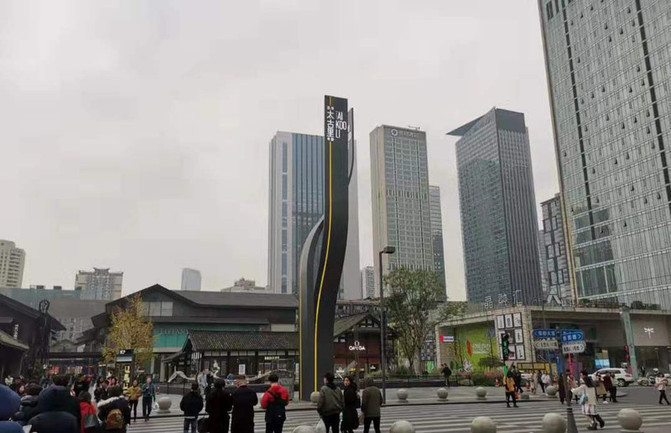 成都远洋太古里太古里地理位置优越,在成都的市中心,步行街特别宽,远远看过去太古里某个商场的顶部就有一只爬墙的大熊猫。