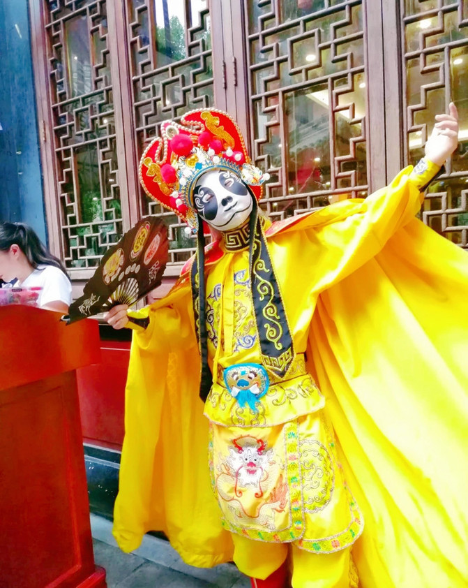 锦里古街 锦里古街门店旁边,有化妆的川剧小生招呼迎客。他们比划着戏文里的动作,猛的一缩脖伸头,白脸就变成红脸,吓人一跳,你还不及诧异生气,他就拉着你做个鬼脸逗你“噗嗤”一笑,这一逗一乐,心情瞬间就好了。