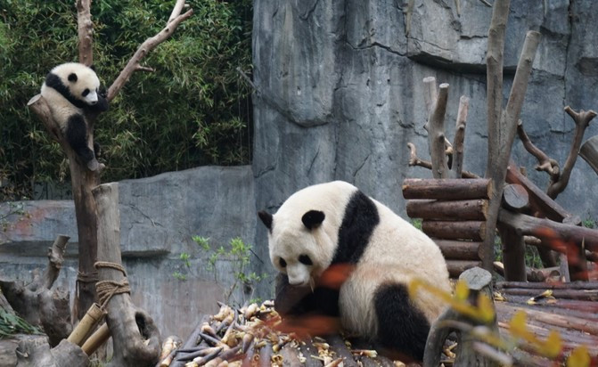 熊猫基地一定要早起!!赶着七点半开园第一波进园,人很少,游览车(游览车直达最远的月亮产房,10RMB一人)上去基本没排队,月亮产房和太阳产房的人也不多(不过这个季节不是繁殖季节看不到熊猫崽子),熊猫基本在9点左右开始出来喂食吃饭活动~