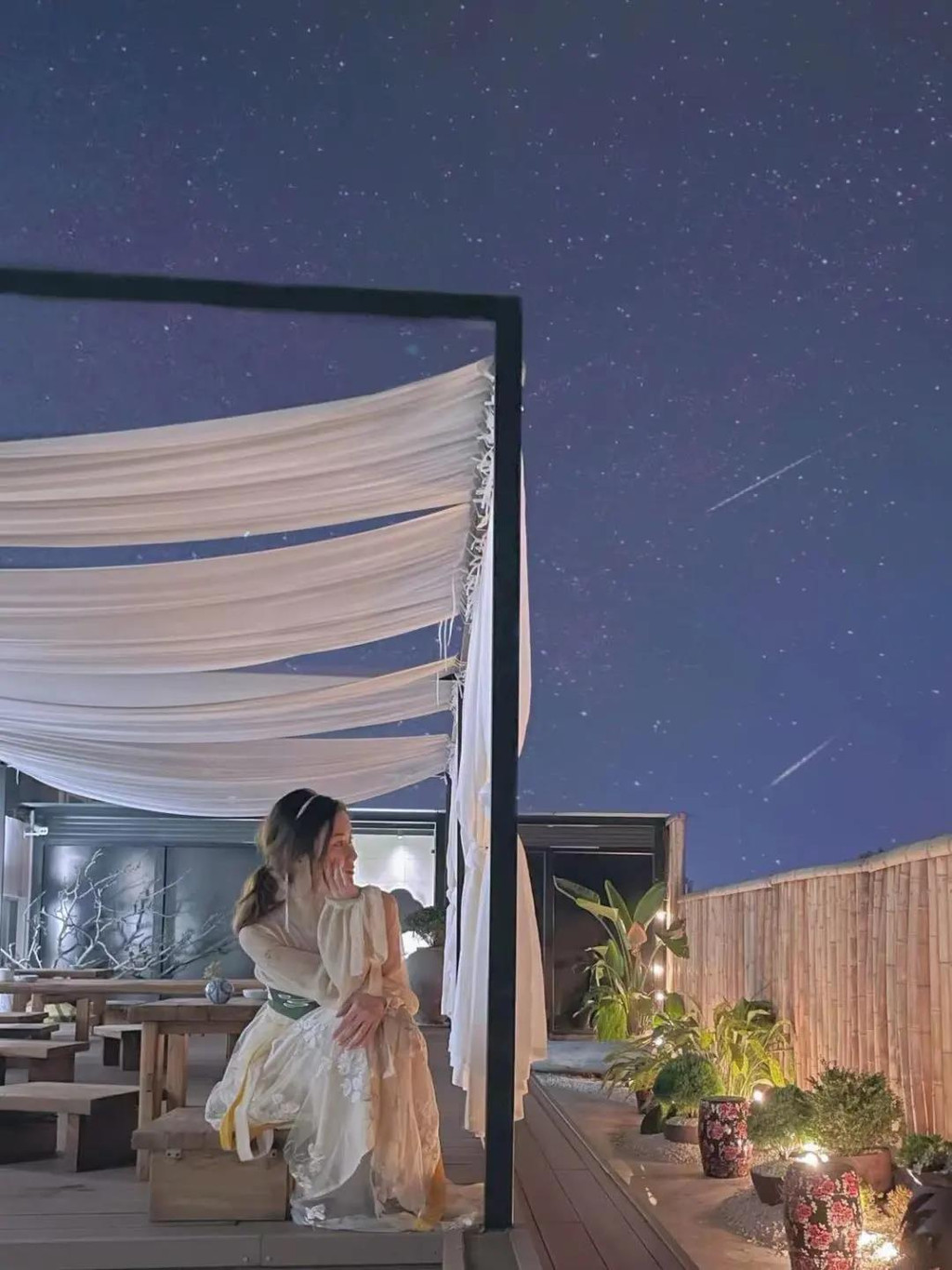 夏日夜晚,在顶楼露台吹着晚风,夜晚褪凉后,神清气爽,享受城市喧嚣中的一刻宁静。