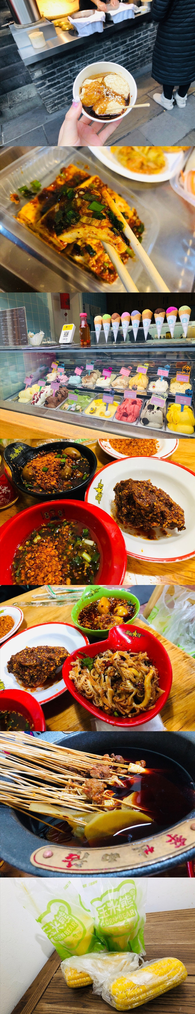行走在古色古香的宽窄巷子,人潮人海中漫步前行,街道两旁各种特色小吃美食让人目不暇接,糖油果子、臭豆腐、冰淇淋等等,可惜胃不够大,不能装下那么多的小吃,只能留着下次再来吃啦。