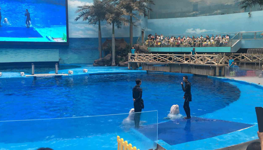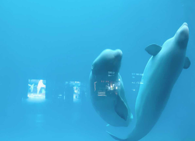 【鲸豚馆】白鲸和海豚的家 不仅可以近距离看到鲸豚的生存环境 还能看到两次表演:白鲸之恋和鲸豚联盟!感受鲸豚的高智商!海豚跃出水面的那一刻觉得一切都值了