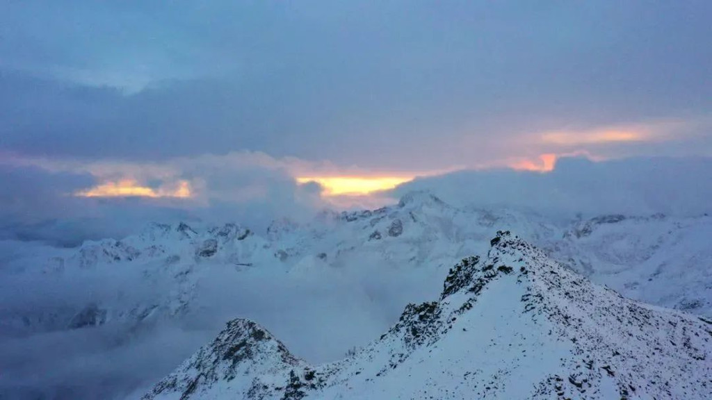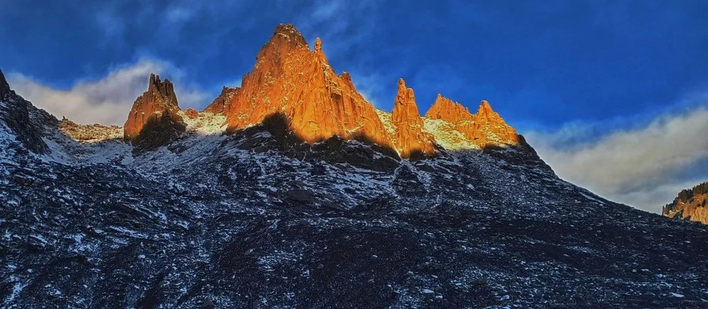 远山上的红光像是神的普照,那是夕阳跳跃在雪山之巅,伫立万年的山峰,此刻如同苏醒的黑武士,仿若看见那久远的年代里,他们的英勇奋战!