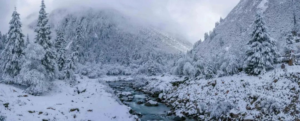 森林、雪山、溪流、高山草甸、高山钙化流池 是这里的特色景观,白雪铺满的草甸分布在原始的森林中,四周山峦起伏,或峰峭挺拔,或曲折蜿蜒。